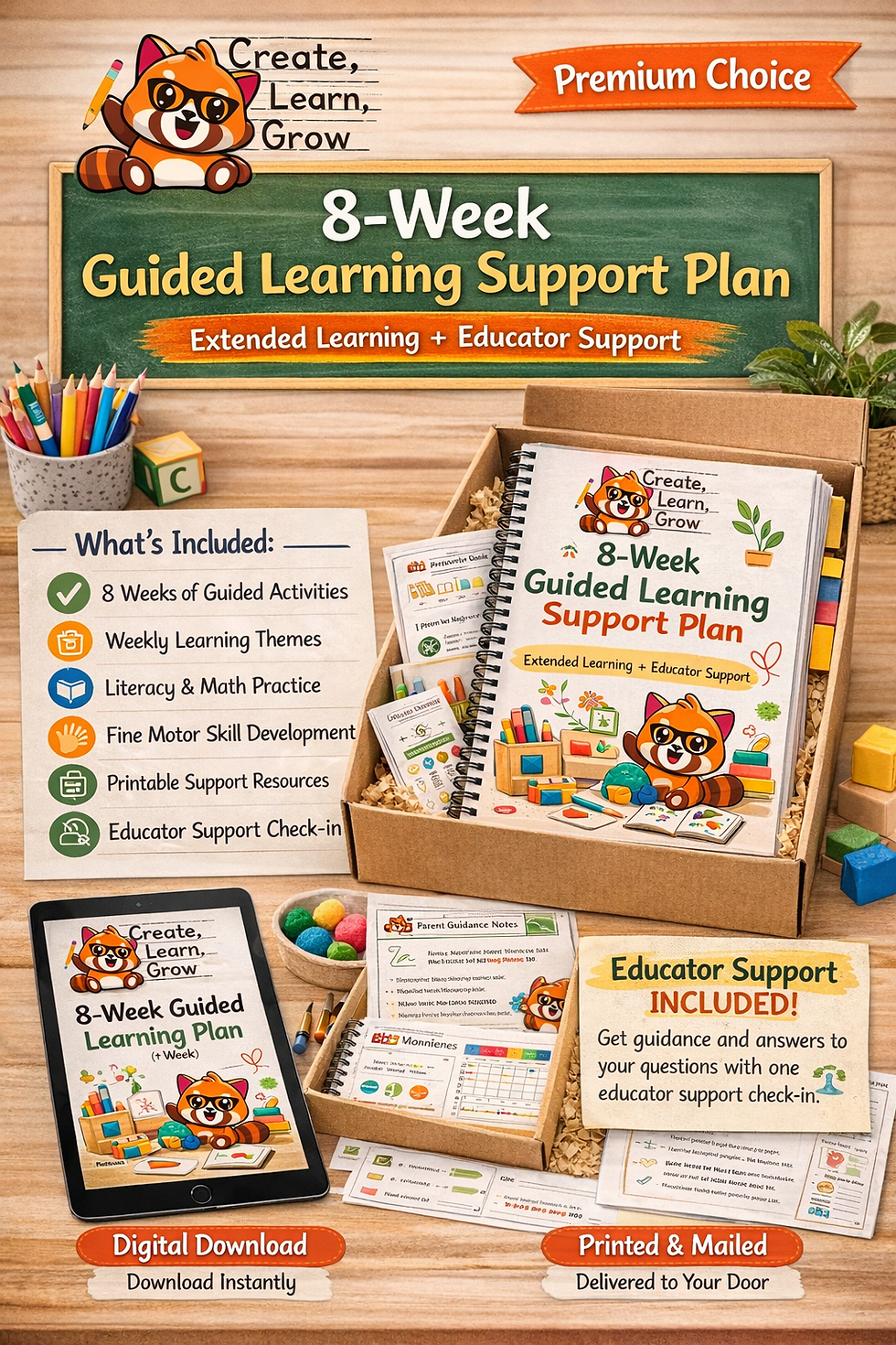 Early learning should feel joyful, intentional, and manageable, not overwhelming. Create Learn Grow offers play-based early learning plans designed by a certified early childhood educator to help parents confidently support their child’s development at home.